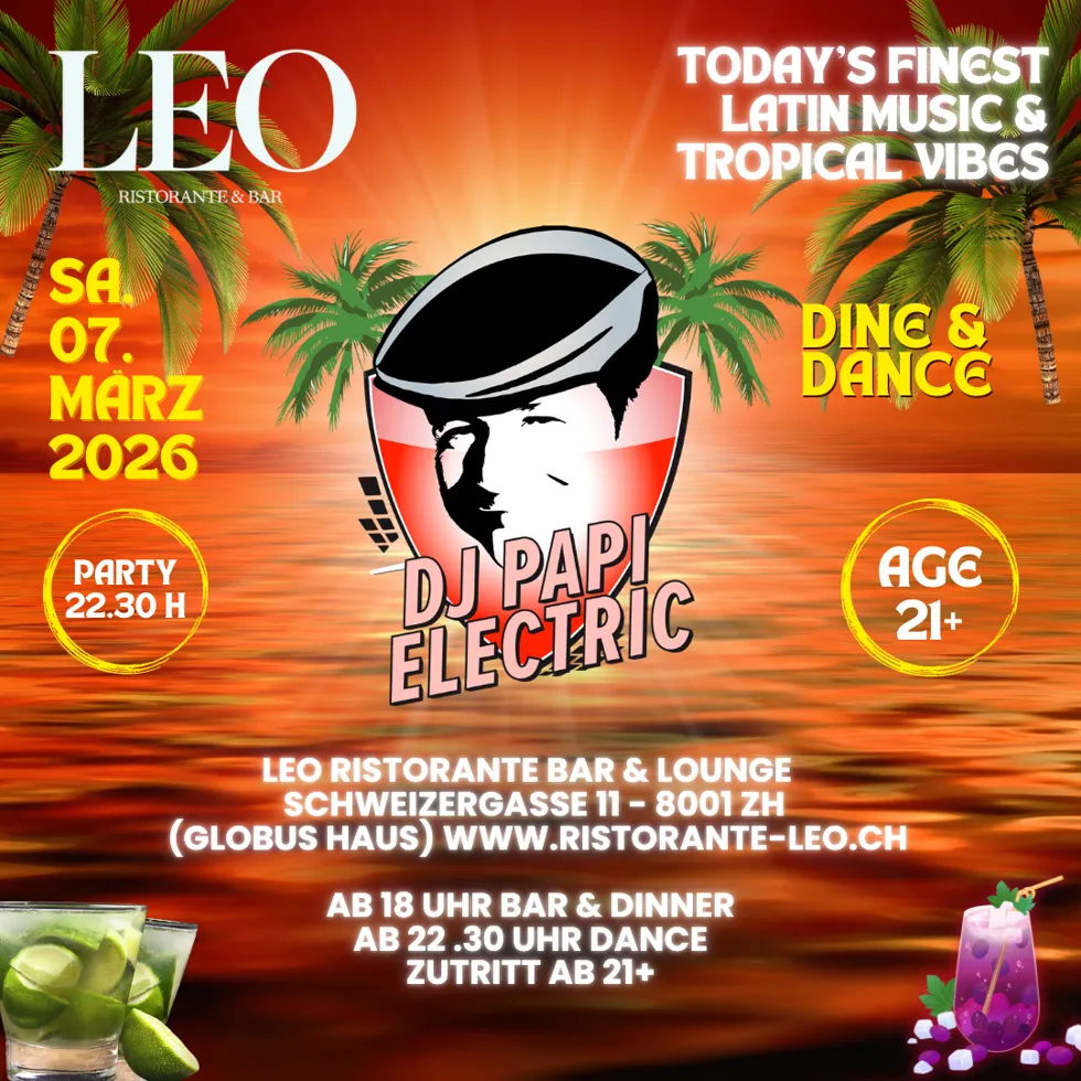 DJ Papi Electric - Today's best Latinmusic @ Leo Ristorante / Bar / Club, 8001 Zürich, 7. März 2026, 22:30 |