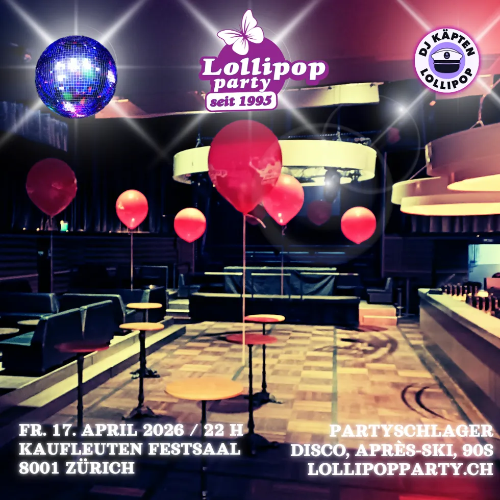 Lollipop Party im Kaufleuten Festsaal, Pelikanplatz, 8001 Zürich, 17. Apr. 2026, 22:00 |