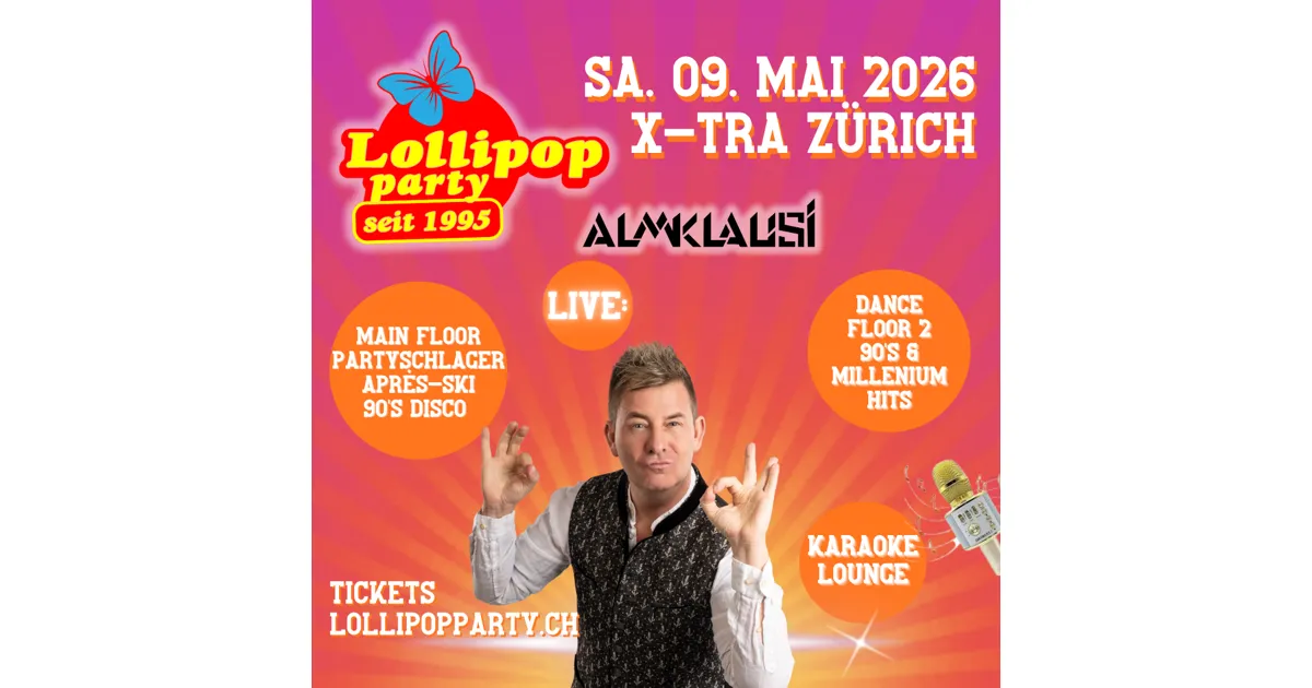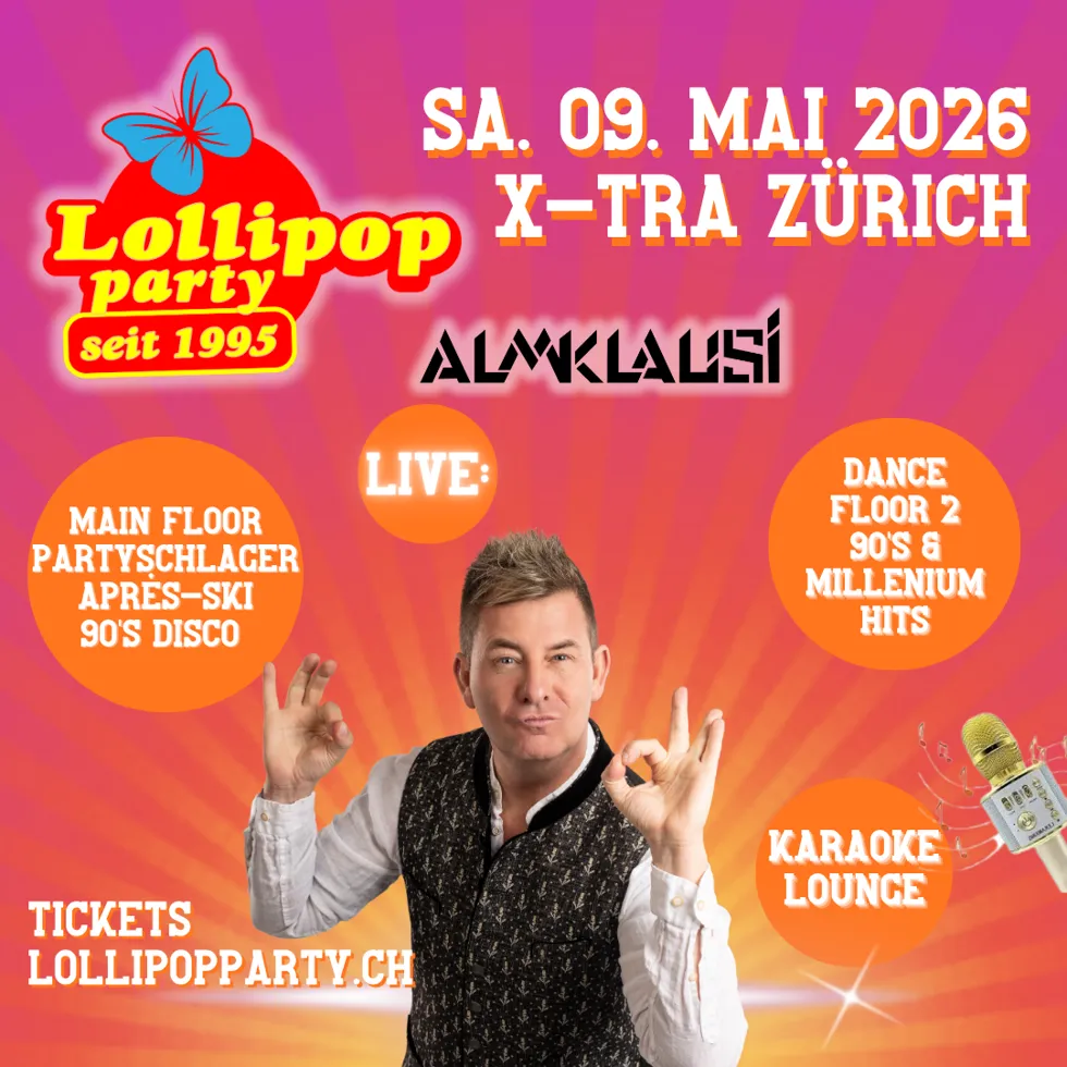 Lollipop Party mit ALMKLAUSI (Live) plus Party auf 2 Floors plus Karaoke Lounge. Sa. 09. Mai 2026 im X-TRA Zürich |